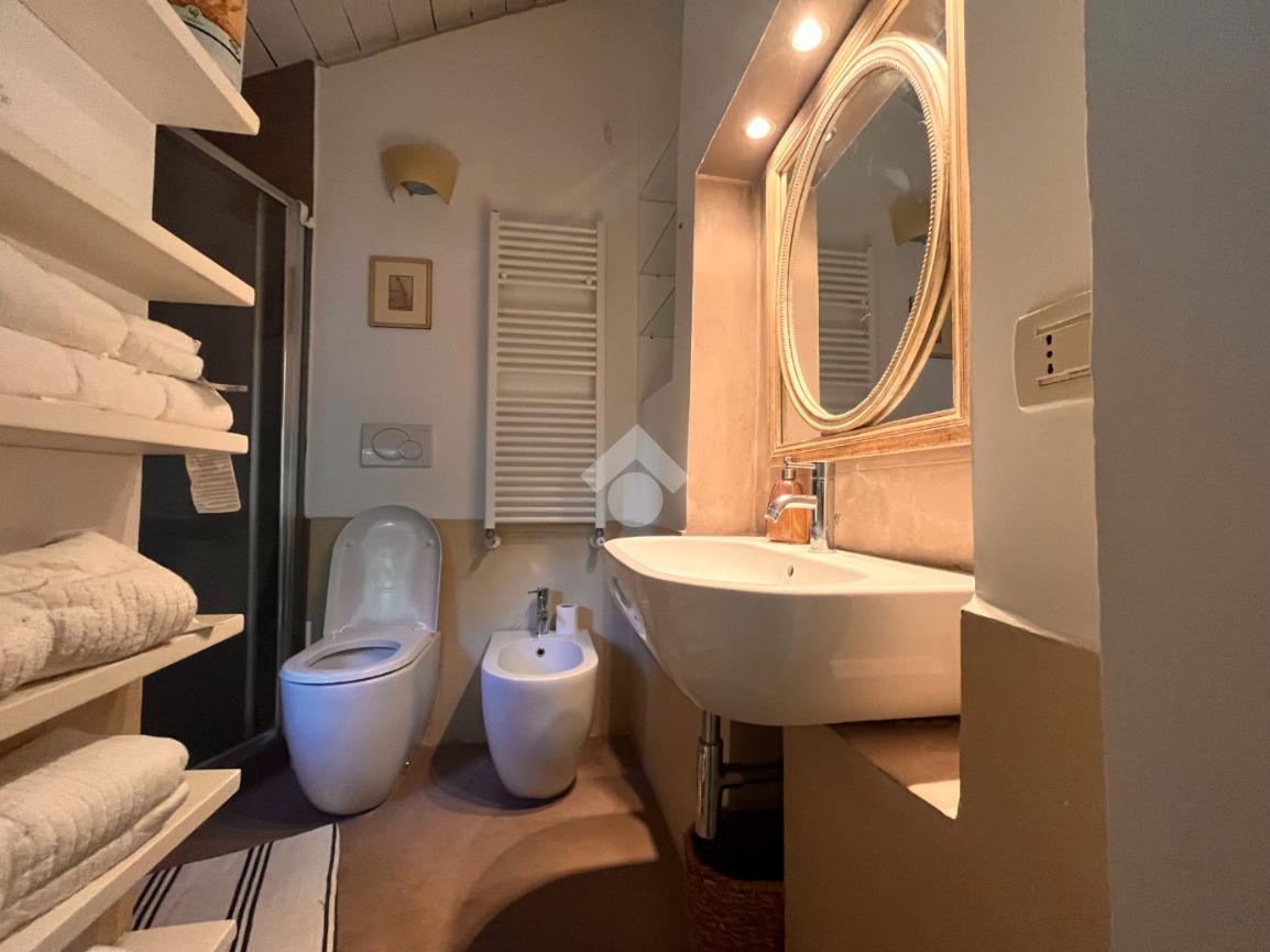 L'immobile si sviluppa su tre livelli ed è così composto: Piano Terra: doppio soggiorno, cucina semi abitabile, ripostiglio, bagno e lavanderia. Primo Piano: camera singola con armadio su misura. Secondo Piano: camera matrimoniale con bagno en suite e una seconda camera attualmente adibita a cabina è rifinito con parquet a terra in tutte le stanze, che dona calore ed eleganza agli ambienti.