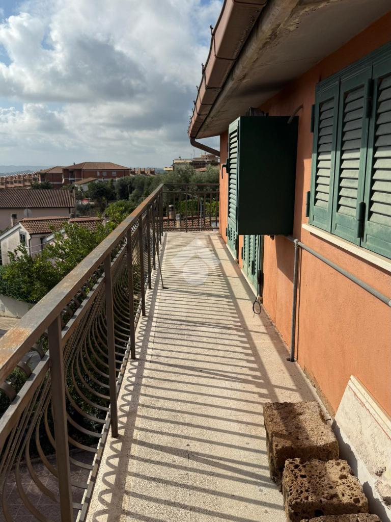 Un ampio disimpegno conduce poi alla zona notte, ben separata, dove troviamo due camere da letto, entrambe con accesso diretto al balcone, e un secondo bagno dotato di doccia. La casa è circondata da un balcone perimetrale che regala luminosità agli ambienti e scorci panoramici sul paesaggio circostante.