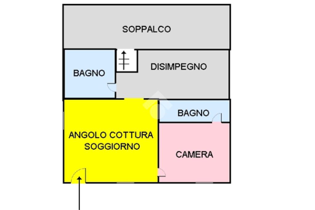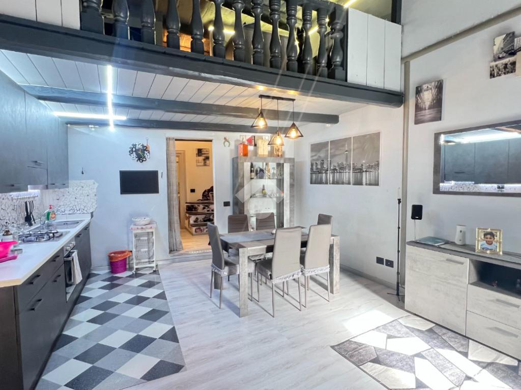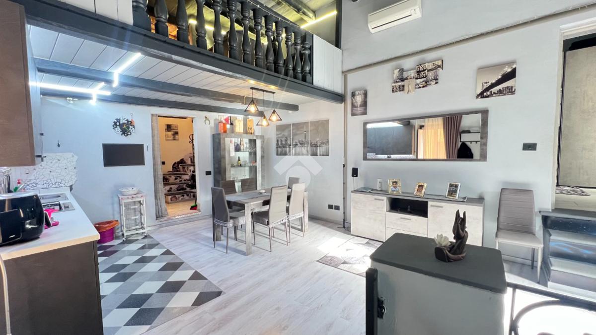 Una scala interna porta al soppalco abitabile, uno spazio versatile e pieno di luce, ideale come studio, zona relax o piccola area ospiti: un ambiente da personalizzare secondo le proprie esigenze e la propria creatività.