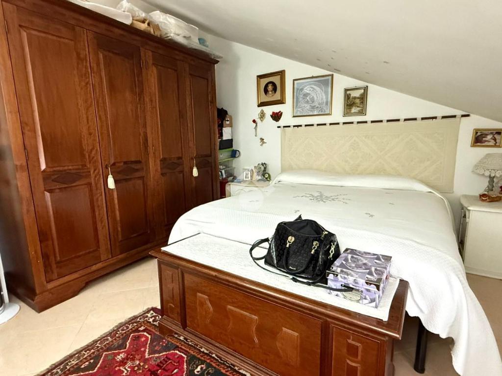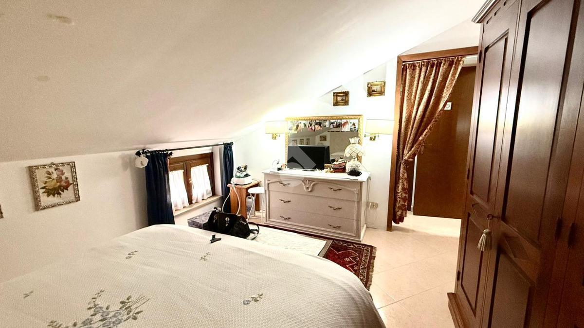 Una scala conduce al piano superiore, dove un disimpegno accompagna verso la zona più intima della casa. La camera matrimoniale accoglie con i suoi armadi a muro, pensati per sfruttare al meglio gli spazi. Accanto, una seconda camera da letto e una terza camera, arricchita da una comoda cabina armadio, rendono il piano notte versatile e adatto a molte esigenze. Qui si trova anche un bagno con doccia, pratico e ben organizzato.