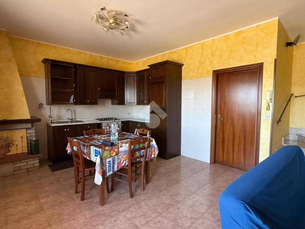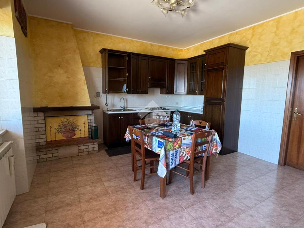 Entrando si viene accolti da una piacevole zona giorno composta da salone con cucina a vista, uno spazio caldo e conviviale reso ancora più accogliente dalla presenza di un termo camino collegato all’impianto di riscaldamento, dettaglio che dona fascino all’ambiente e comfort durante la stagione invernale.