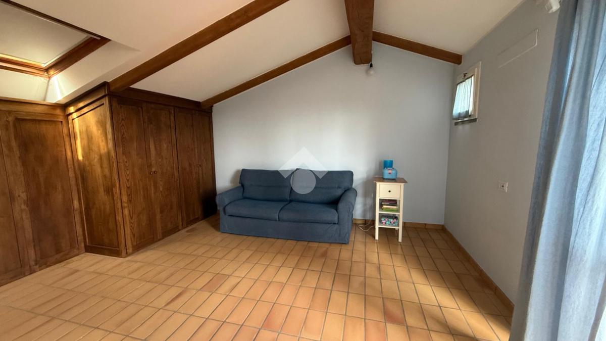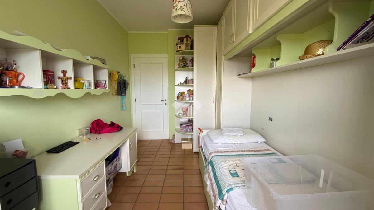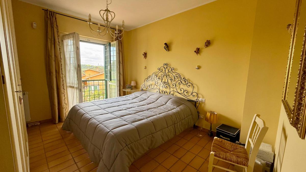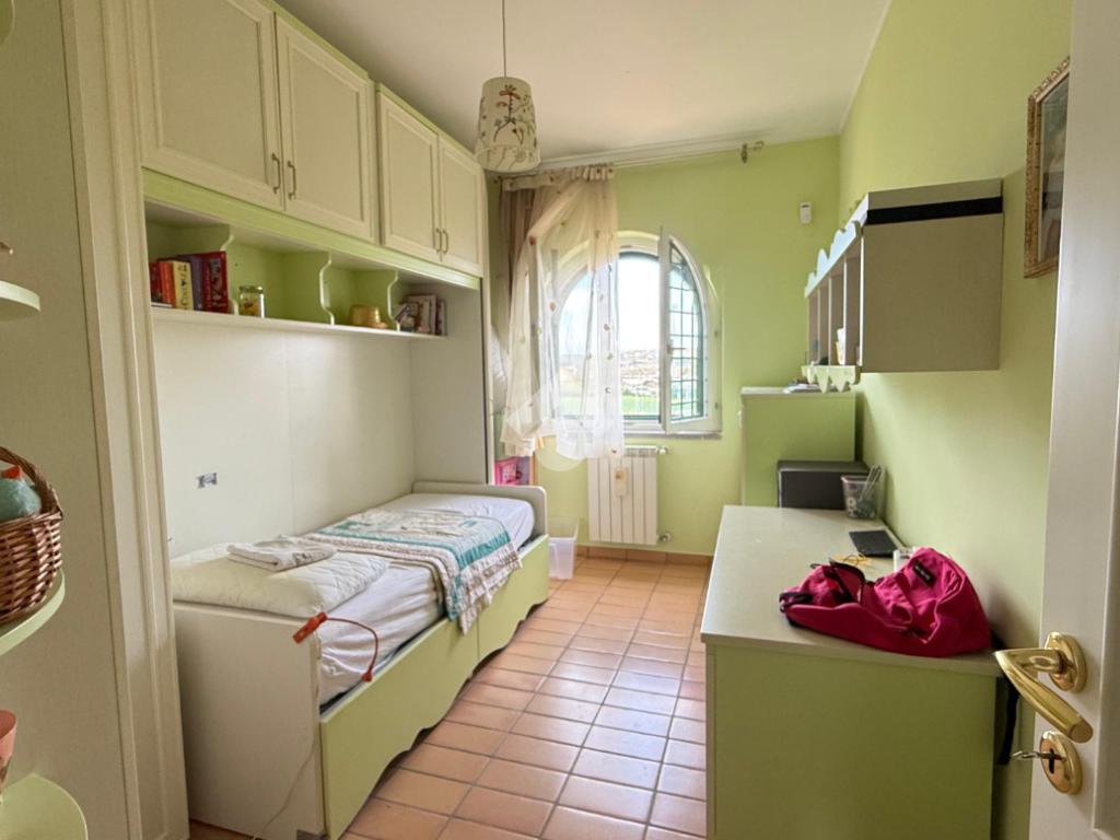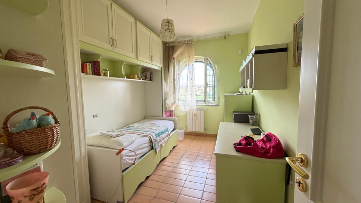 Salendo verso il piano terra, l’atmosfera si fa ancora più ariosa grazie a un ampio disimpegno che conduce a un secondo soggiorno, già predisposto per un angolo cottura e dotato di un proprio ingresso indipendente. Da qui si accede a un grande terrazzo di 45 mq, un palcoscenico privato affacciato sul verde. Su questo stesso livello si sviluppa una zona notte composta da una camera matrimoniale, una cameretta e un bagno rifinito, offrendo una dimensione di vita quotidiana completa e confortevole. Il viaggio prosegue infine verso il piano superiore, dedicato interamente alla suite padronale: una stanza ampia e luminosa, arricchita da un balcone con affaccio sul verde, da armadi a muro e da un bagno privato, pensata come un rifugio di assoluta privacy.