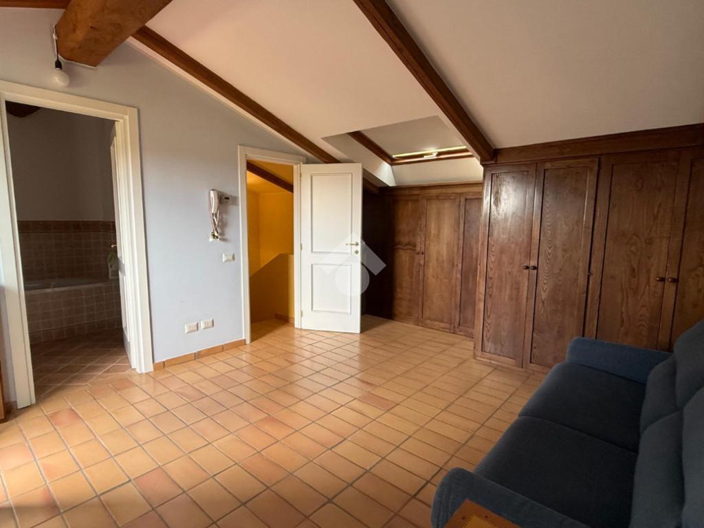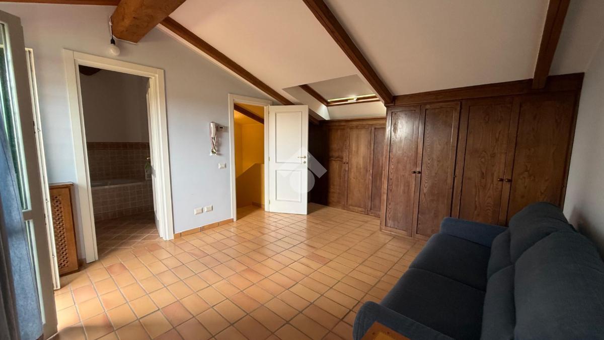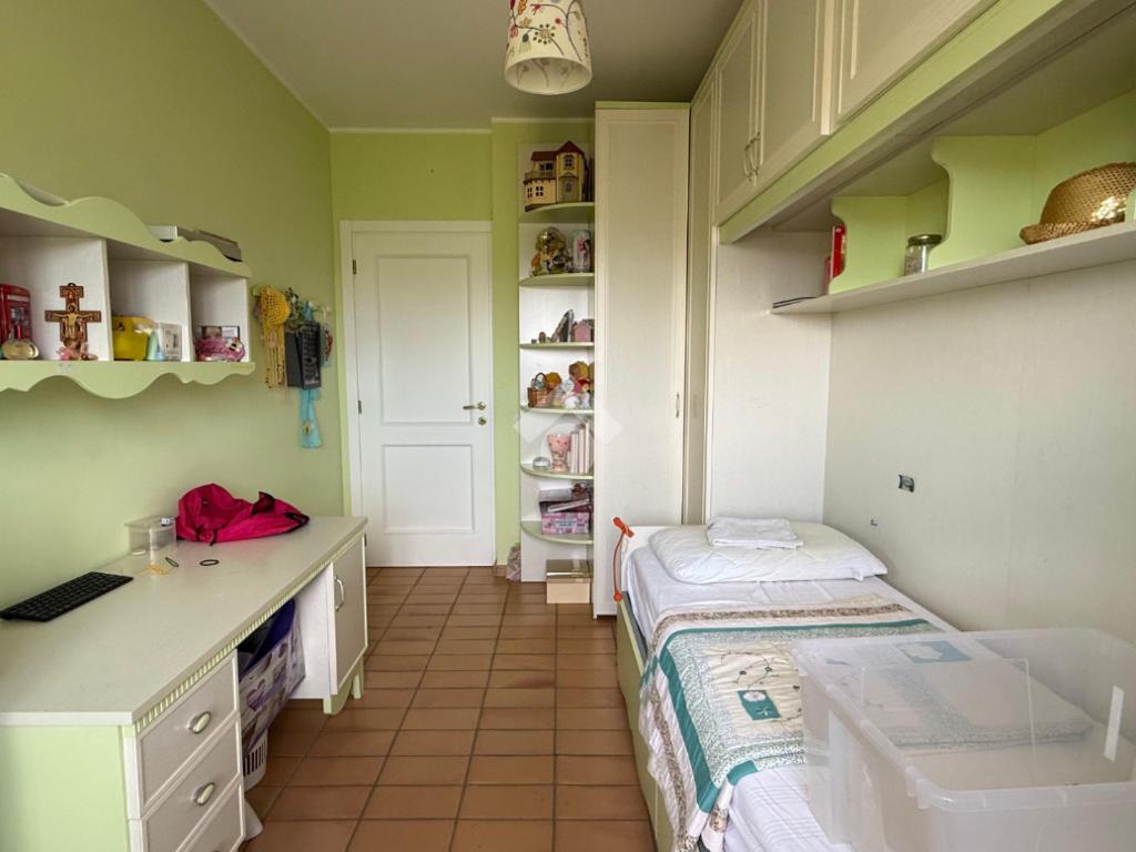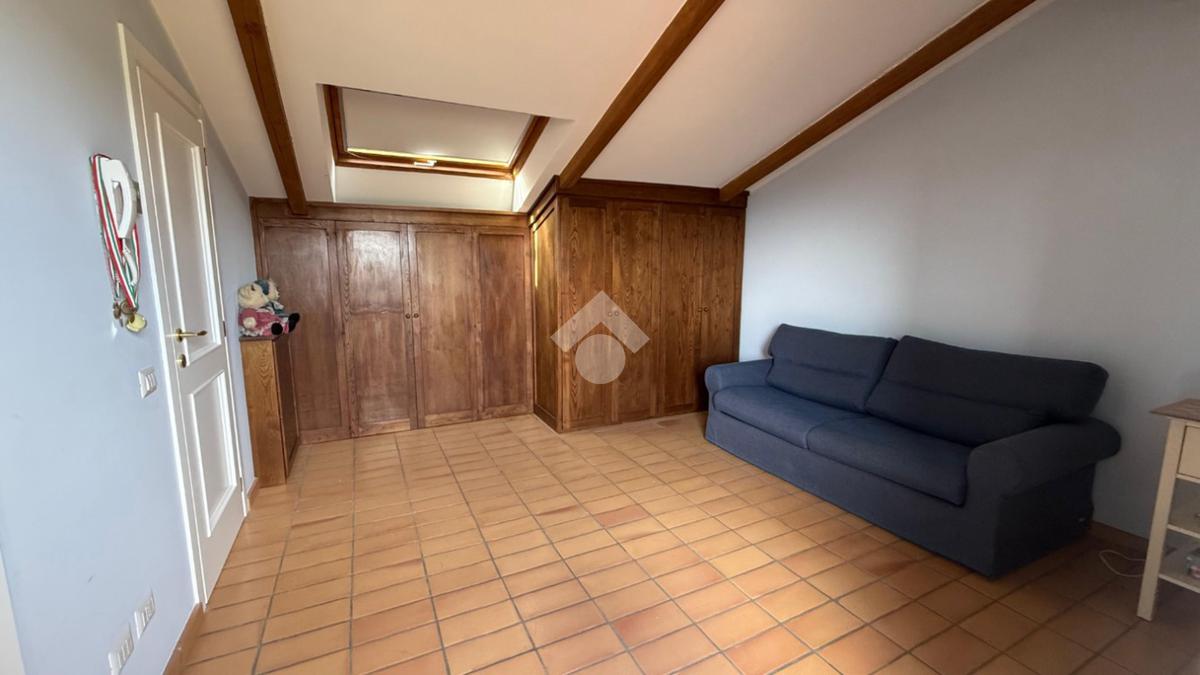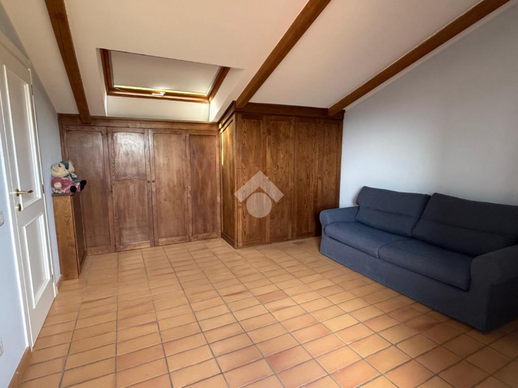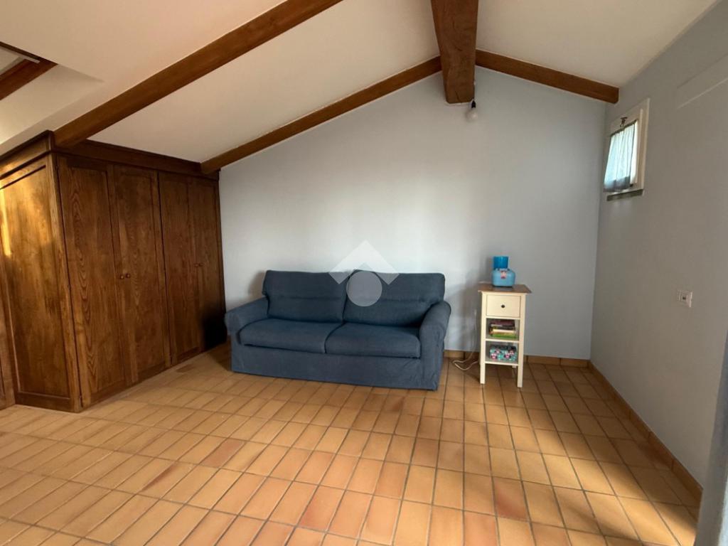 Salendo verso il piano terra, l’atmosfera si fa ancora più ariosa grazie a un ampio disimpegno che conduce a un secondo soggiorno, già predisposto per un angolo cottura e dotato di un proprio ingresso indipendente. Da qui si accede a un grande terrazzo di 45 mq, un palcoscenico privato affacciato sul verde. Su questo stesso livello si sviluppa una zona notte composta da una camera matrimoniale, una cameretta e un bagno rifinito, offrendo una dimensione di vita quotidiana completa e confortevole. Il viaggio prosegue infine verso il piano superiore, dedicato interamente alla suite padronale: una stanza ampia e luminosa, arricchita da un balcone con affaccio sul verde, da armadi a muro e da un bagno privato, pensata come un rifugio di assoluta privacy.